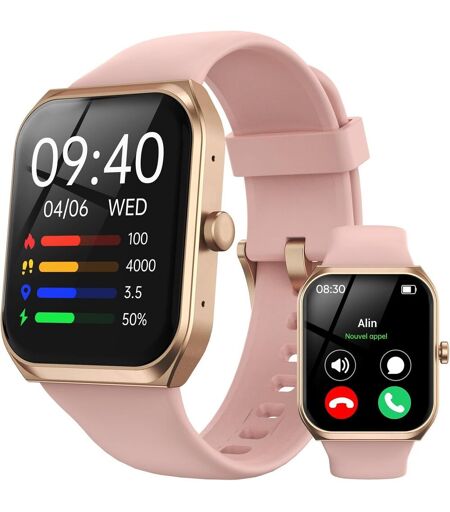 ¿1,91"" Grand écran Coloré & Message Notification¿:1.91 inch Full HD Touch Screen Women Connected Watch, lorsque votre téléphone portable reçoit un appel entrant, un message texte, Facebook, Twitter ou un message WhatsApp, la montre connectée homme femme vous alertera, vous ne manquerez aucune personne ou chose importante. ¿Appel Bluetooth Montre connectée & Health Monitoring¿ : Vous pourrez vous connecter et passer des appels directement via la montre montre connectee, et il y aura des trous sonores car la montre a une fonction de conversation. Il n'est pas recommandé de porter la montre pendant une longue période en nageant ou en se baignant. En outre, la montre peut surveiller l'oxygène du sang, le sommeil, les données de fréquence cardiaque, toujours surveiller votre santé. ¿16+112 Modes de Mouvement & Mini-jeux Amusants¿ :La montre sport femme dispose de 16 modes de sport intégrés et de 112 modes de sport qui peuvent être activés grâce à OnWear Pro. OnWear Pro peut être utilisé pour lancer trois sports : la course en extérieur, la marche et le cyclisme, qui peuvent être combinés avec le GPS du téléphone pour enregistrer le parcours sportif. La montre est équipée de 6 jeux solo : Racing, 2048, Snake, Number Pusher, Colour Changing Cube et Othello. ¿Custom Settings & 250+ Download Online¿ :OnWear Pro prend en charge les cadrans personnalisés et vous pouvez utiliser n'importe quelle image comme image de fond du cadran. La montre est livrée avec 5 cadrans intégrés. Avec un cadran à décompression dynamique nouvellement développé. OnWear Pro dispose actuellement de plus de 250 cadrans basés sur le cloud qui peuvent être téléchargés et envoyés à la montre, et d'autres sont ajoutés en permanence. ¿30 Jours de Veille & 12 Mois de Garantie¿ :Batterie grande capacité 280mAh et puce Bluetooth basse énergie. Charge rapide magnétique, seulement 2h de charge, jusqu'à 7-10 jours d'utilisation, 30 jours de veille, très pratique pour les voyages d'affaires ou les voyages.La garantie du produit est étendue pour une période de 12 mois à compter de la date d'achat. Si vous avez des problèmes, veuillez nous contacter..La livraison depuis la France est prévue dans 5 jours ouvrés, n'hésitez pas à passer votre commande ...