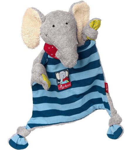 Doudou éléphanteau aux couleurs harmonieuses pour les bébés et les tout-petits de 0 à 36 mois ; cadeau de naissance ou de baptême idéal. Toucher agréable, matières douces anti-bouloche 100% coton. Corps plat, plus facile à câliner, à mâchouiller, et à emporter partout ! Facile à saisir par la trompe ou les drôles de n?uds aux extrémités ; apaisant et silencieux, il rassure bébé et l¿accompagne dans son sommeil. Hygiène garantie, lavable en machine à 30 ° sur cycle doux. Fabrication soignée et sécurité des matériaux, aucun accessoire détachable (foulard cousu) afin d¿éviter tout risque d¿ingestion, aucune substance nocive. Testé par des laboratoires accrédités. Contenu de la livraison : 1 doudou éléphanteau sigikid réf. 48935. Composition : 100% coton, bourrage tête : ouate de polyester. Coloris : bleu/gris. Taille: 27 cm. Conforme à la norme CE. Attention:Réservé à un usage domestique.La livraison depuis la France est prévue dans 5 jours ouvrés, n'hésitez pas à passer votre commande ...