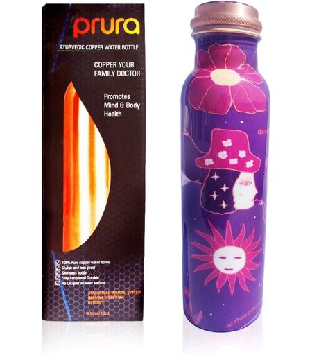 Bouteille D'eau En Cuivre Pur Imprimé -Bouteille Ayurvédique Anti-Fuite En Cuivre Pour Le Sport, La Gym, L'extérieur, Le Yoga, Les Bienfaits Pour La Santé