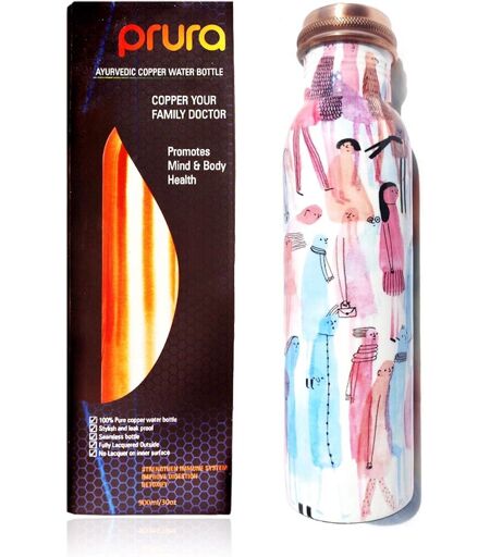 Bouteille D'eau En Cuivre Pur Imprimé -Bouteille Ayurvédique Anti-Fuite En Cuivre Pour Le Sport, La Gym, L'extérieur, Le Yoga, Les Bienfaits Pour La Santé