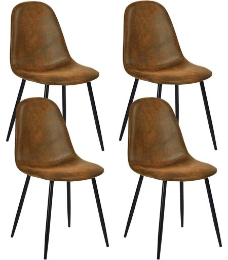 Lot De 4 Chaises De Salle À Manger Vintage Cuisine, Salon, Chambre, Bureau, Tissu En Daim, Marron, 40 X 52 X 86 Cm, Métal, Noisette, 40x52x86cm