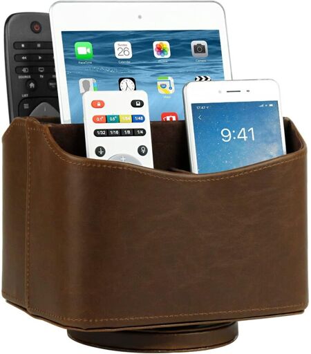 Gardez votre télécommande TV, la télécommande de climatisation, le smartphone et d'autres appareils.Sa grande capacité vous permet de stocker des articles de toutes tailles. Il est également compatible avec d'autres objets tels que les téléphones portables, les c aux, les stylos ou les fournitures de bureau.Rotation à 360 degrés au sol. Il est composé de cinq grilles pour classer vos affaires.Caractéristiques matériau cuir synthétique - Dimensions 18,7 x 14 x 15 cm. ...