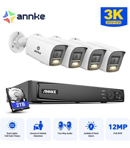 ANNKE Kit de Vidéosurveillance Exterieure 8CH nvr 4×Caméras Intelligente Double Lumière Vision Nocturne, Audio 2 Voies,Détection Mouvement,Kit Caméra
