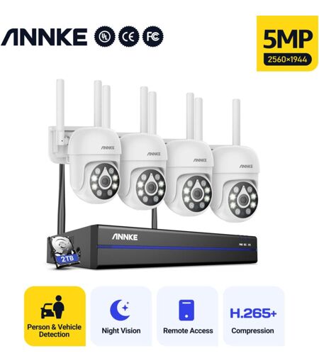 Annke - Caméra extérieure sans fil 5MP panoramique à 360° avec vision nocturne et suivi automatique, détection humaine, IP66