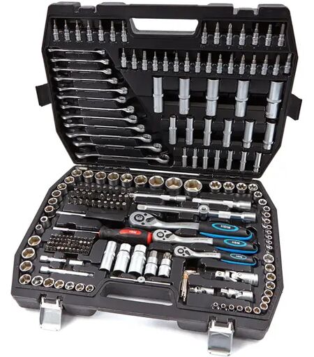 Avec le coffret de douilles HBM de 216 pièces en mesures INCH, vous disposez d’un ensemble comprenant à la fois des tailles en pouces et en métrique – une combinaison parfaite pour le mécanicien automobile ou le bricoleur. Cet ensemble polyvalent est idéal pour les travaux sur des véhicules, des machines ou des appareils utilisant différents systèmes de mesure. Le set est soigneusement rangé dans une mallette en plastique robuste et comprend une large sélection de douilles, rallonges et accessoires. Que vous travailliez sur une voiture classique américaine ou une moto moderne, vous avez toujours la bonne taille à portée de main. ...