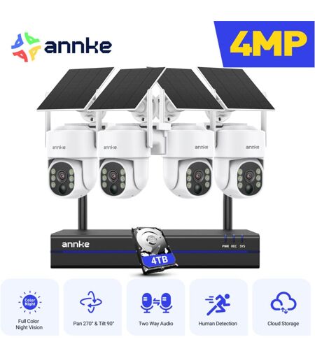 Annke - 4MP Caméras de sécurité solaires sans fil, batterie 9000 mA pour caméra WiFi 4 To