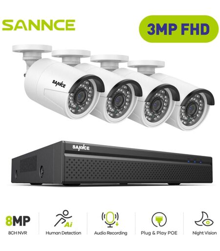 Kit de Vidéosurveillance Exterieure 3MP 4×IP Caméras Smart ir Vision Nocturne,Détection Mouvement Kit Caméra de Surveillance Filaire - Sannce
