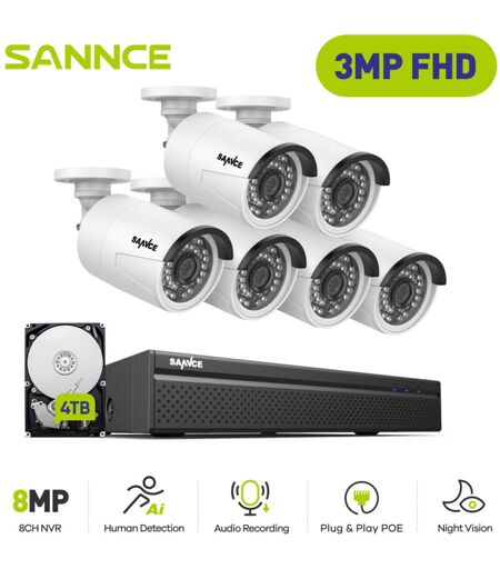 Kit de Vidéosurveillance Exterieure 3MP 6×IP Caméras Smart ir Vision Nocturne,Détection Mouvement Kit Caméra de Surveillance Filaire 4TB - Sannce