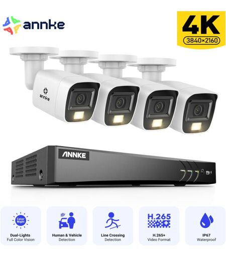 ANNKE 4K Kit de Vidéosurveillance Extérieures Filaires 8CH DVR,4 Caméras 8MP,Vision Nocturne Couleur et IR,Accès à Distance Système de Sécurité,Sans hdd