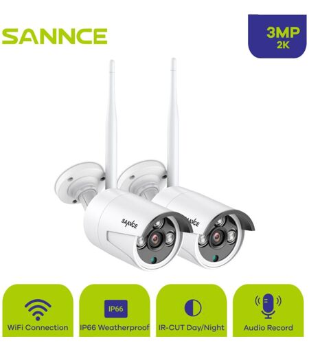 WiFi Caméra de Surveillance ip Caméra sans Fil 3MP 2 Caméras de Vidéosurveillance sécurité intérieur extérieur Wireless caméra Bullet - Sannce