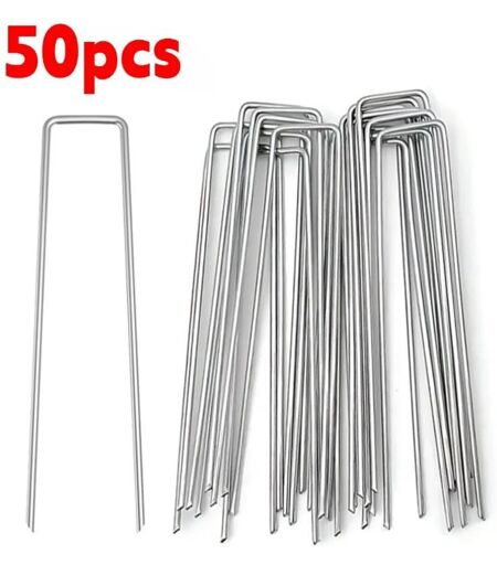 KAAPL-Agrafes De Jardin De Type U,Piquets De Tube De Clôture Robustes,Barrière De Pointe De Paysage Galvanisée,Clou De Sol Pour Contenir Des Pelouses,Clôture De Tente,4X15Cm 50Pcs,