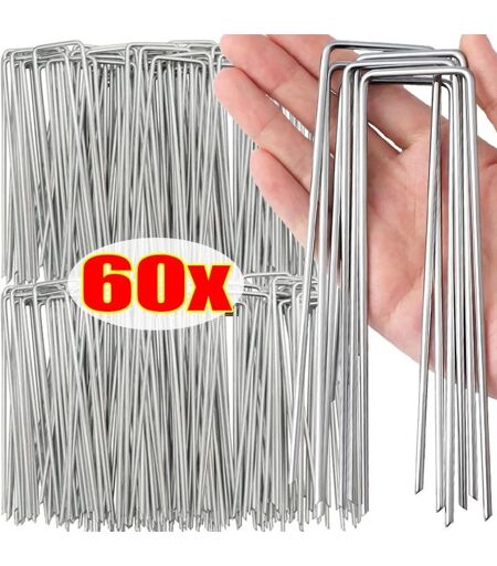 Specifications; Chimique Hign-concerné:Aucun; Type de kit:YES; Matériau:Acier inoxydable; Description :; Matériau : acier galvanisé; Forme : en forme de U; Taille : 2,2 mm de large 4 cm de long 15 cm, 2,2 mm de large 4 cm de long 10 cm; Couleur : Argent; Fonction : réparer les bords, les racines des plantes, les barrières contre les mauvaises herbes, les tissus ou les plastiques paysagers, les clôtures, les tuyaux, garder votre jardin propre et bien rangé.; Scénarios applicables : serres agricoles, chiffons anti-herbes, jardins, cours, jardins, pelouses, etc. Quantité: 10/20/30/50/60 pièces; ..La livraison depuis la France est prévue dans 5 jours ouvrés, n'hésitez pas à passer votre commande ...