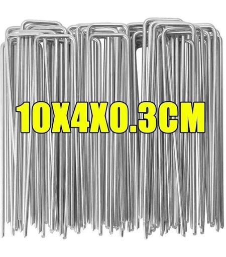 KAAPL-Piquets De Jardin Galvanisés,Agrafes D'Aménagement Paysager,Broches En Forme De U,Piquets Sod Antirouille,Clôtures,Fils D'Extérieur,Tentes,Bâches,Piquets De Fixation,Silver-10X4X0.3Cm,10Pcs