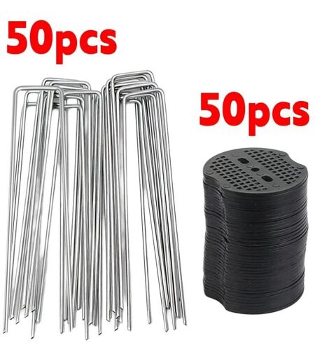 KAAPL-Agrafes De Jardin De Type U,Piquets De Gazon Artificiel Galvanisés,Piquets De Tube De Clôture Robustes,Broches Sod,Outils De Fixation De Jardinage,4X15Cm 50Pcs Set,