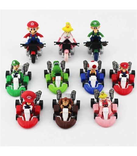 KAJGL-Super Mari Bros Kart Lot De 10 Kart À Tirer Pour Voitures,Moto,Luigi,Yoshi Toad,Princesse,Pêche,Âne,Kong 6,3 Cm Pour Enfants+Cadeau (10 Pièces)