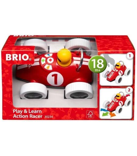 1 2 3 PARTEZ ! Appuyez sur l'un des 4 boutons de direction sur le tableau de bord de la voiture, attachez votre ceinture et c'est parti pour une course-poursuite dans toute la pièce ! Avec son design inspiré de l'emblématique voiture de course BRIO, ce petit bolide amusera votre enfant pendant des heures. Nécessite 4 piles AAA non incluses.DÉVELOPPE LA MOTRICITÉ ET LA CURIOSITÉ Ce jouet permet à votre tout-petit d'expérimenter et de comprendre les relations de cause à effet, de développer la coordination ?il-main, de stimuler la motricité et d'encourager la marche en poursuivant la voiture de course.UN CADEAU IDEAL POUR FILLES ET GARCONS Ses couleurs et son design scandinave en font un jouet parfaitement mixte, aussi bien pour les petites filles que pour les petits garçons. Un jouet de qualité qui résiste à toutes les aventures. Dimensions 15 x 11 x H10 cm.EN TOUTE SÉCURITÉ Nous savons que les enfants jouent parfois avec leurs jouets d'une manière autre que celle attendue. C'est pourquoi nous testons nos produits rigoureusement selon des exigences de sécurité strictes, qui dans bon nombre de cas sont plus sévères que les exigences légales.HAUTE QUALITE Fabriqué à partir de bois de hêtre certifié FSC, de plastique de haute qualité et incluant des détails métalliques raffinés. FSC organisme à but non lucratif qui protège, contrôle et encourage la gestion durable des forêts..La livraison depuis la France est prévue dans 5 jours ouvrés, n'hésitez pas à passer votre commande ...