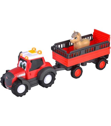 KAJGL-Abc Massey Ferguson Tracteur Pour Enfants À Partir De 1 An (30 Cm)¿Tracteur De Ferme Avec Remorque D'Animaux Et Cheval,Jouet Pour Encourager La Motricité Avec Pièces Mobiles,Lumière Et
