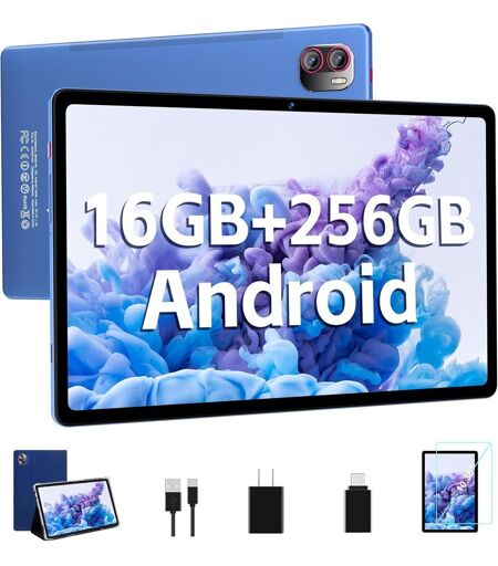 KALWS-Tablette Android Tablette 10.36 Pouces Écran 2K,16 Go Ram+256 Go Rom (Tf 1 To),Octa-Core 2.0 Ghz,5G Wifi/5+13Mp/8600Mah/Bluetooth/Certifié Gms/Tablette Avec Coque De Protection-Bleu