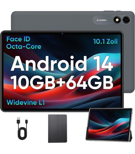 HAUTES PERFORMANCES - la tablette est équipée d'Android 14, d'un processeur octa-core Unisoc T606 haute performance et de 10 Go (4+6) de RAM pour une exécution plus rapide des programmes et une expérience utilisateur fluide. 64 Go de ROM et 1 To de capacité extensible pour stocker vos applications préférées et les fichiers dont vous avez besoin.RESTEZ À LA VITESSE - Cette tablette prend en charge le WiFi 2.4/5GHz pour des vitesses d'Internet plus rapides et des connexions plus stables, améliorant la réactivité pendant les vidéos et la naviion sur le web. Elle comprend également des haut-parleurs doubles, une fonction d'écran partagé, le Bluetooth 5.0, la radio FM, le GPS et une prise jack 3,5 mm pour tous vos besoins.GRANDE BATTERIE - La tablette Android est équipée d'une batterie ultra-grande de 8000mAh avec plus de 8 heures d'autonomie, garantissant que vous ne serez pas interrompu pendant que vous travaillez, étudiez ou jouez. L'étui sur mesure offre une protection totale et une position confortable pour la tablette.GRAND ÉCRAN HD - La tablette de 10 pouces est dotée d'un cadre étroit et d'un écran FHD 1280x800 pour des images plus claires et une expérience visuelle exceptionnelle. Les doubles caméras HD 5MP+8MP vous permettent de prendre des photos HD, de passer des appels vidéo ou de faire des vidéoconférences à tout moment.EMBALLAGE & GARANTIE -7x24 heures équipe d'assistance technique professionnelle, si vous rencontrez des problèmes lors de l'utilisation, veuillez nous contacter..La livraison depuis la France est prévue dans 5 jours ouvrés, n'hésitez pas à passer votre commande ...