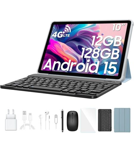 KALWS-Android 15 Tablette 10 Pouces Tab60Pro,4G Lte 12Go Ram 128Go Rom(2To Tf) Tablette Tactile Avec Clavier Et Souris,5G Wifi Octa Core Gaming Tablette,7700Mah/Widevinel1/Face Id/Gms/Gps