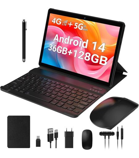 Latest Android 14 + Octa-CoreCette tablette Q10C est équipée du dernier système Android 14 et d'un processeur octa-core de 2,0 Ghz, qui non seulement génère peu de chaleur et consomme peu d'énergie, mais fonctionne également de manière plus fluide et plus rapide, améliorant considérablement l'efficacité et la commodité d'utilisation de la tablette.Vérifier les autorisations des applications et protéger les mots de passe à six chiffres pour faire l'expérience d'une technologie de pointe et d'une protection améliorée de la vie privée.4G LTE et 5G WiFi + Bluetooth 5.0La tablette est équipée de deux emplacements pour carte SIM et prend en charge les réseaux 2G/3G/4G. Vous pouvez ajouter une carte SIM standard et vous connecter à Internet via la carte SIM ou le Wi-Fi 5G où que vous soyez. La tablette est également équipée de Bluetooth 5.0 pour connecter des casques Bluetooth, des claviers Bluetooth et d'autres périphériques Bluetooth, ce qui la rend plus pratique pour le travail quotidien, l'étude, etc.36 Go RAM + 128 Go ROM + 1 To extensible La tablette Android 14 de 10,1 pouces est équipée de 36GB (12GB de stockage physique + 24GB de stockage virtuel) de RAM et de 128GB ROM et prend en charge les cartes TF extensibles jusqu'à 1TB (non incluses), ce qui permet de stocker un grand nombre d'applications, de photos, de vidéos, de musique et de documentation, etc. En même temps, il peut lancer une application et une vidéo rapidement et en douceur et rejeter caton.Écran IPS 10 pouces + 8000 mAhTIGERFU tablette Android 10,1 pouces dispose d'un écran IPS haute résolution 1280*800 et d'une grande batterie 8000 mAh, avec des couleurs plus vives et réalistes, des images plus nettes, une qualité sonore plus nette et une durée d'utilisation plus longue.L'écran 10,1 pouces offre plus d'espace, ce qui fait de cette tablette un bon choix pour ceux qui aiment regarder des films, des émissions de télévision ou écouter des chansons.Double appareil photo 5 MP + 8 MP, supporte OTG Cette tablette de 10,1 pouces est équipée d'une caméra frontale de 5 MP et d'une caméra arrière de 8 MP, répondant au double besoin de prendre des photos et de passer des appels vidéo.Elle prend également en charge OTG pour faciliter le transfert de données.Elle est également livrée avec un corps en métal et un étui de protection pliable, qui est non seulement élégant mais aussi durable, pour emmener facilement cette tablette PC mince et amusante en déplacement.More Accessories + After-Sales ServiceLa tablette est livrée avec une gamme complète d'accessoires souris, clavier, casque, chargeur, stylet, étui de protection, etc. C'est le premier choix de cadeau pour votre famille et vos amis. Pendant ce temps, la marque TIGERFU a une équipe de service après-vente professionnelle, nous nous engageons à votre satisfaction, si vous avez des questions, n'hésitez pas à nous contacter, nous vous donnerons une réponse satisfaisante dans les 24 heures..La livraison depuis la France est prévue dans 5 jours... ...