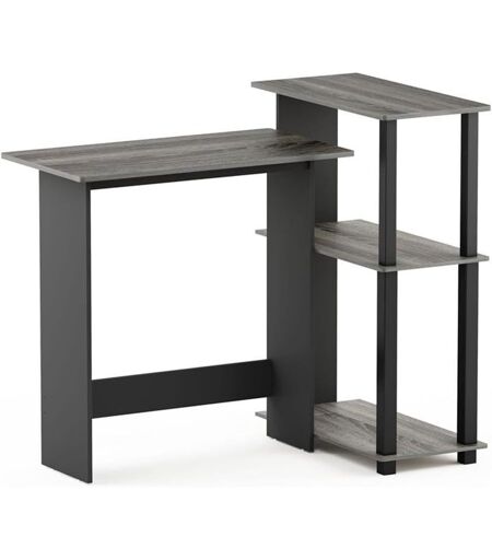 Ksfal-Abbott Bureau D'ordinateur D'angle Avec Étagère,Chêne Français Gris/Noir,One Size