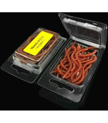 Lot D'appâts Artificiels En Pvc Pour La Pêche, Lot De Leurres Pour Attraper Des Poissons, Ver De Terre, Ver De Terre, Odeur Bionique, Rouge Foncé, Matériel Pour Pêcher, 8/10cm, 20 Pièces