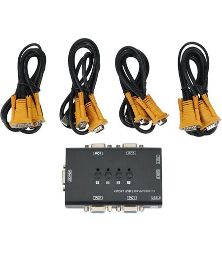 Le boîtier de commutation KVM VGA USB à 4 ports vous permet de contrôler 4 ordinateurs avec un seul ensemble de commandes (souris, clavier, imprimante et moniteur). Il comprend 4 câbles, VGA et câble USB sont 2 en 1.Entrée: Max 4 pièces. Sortie: 1 port VGA et 3 ports USB2.0. (tels que moniteur et souris, clavier, imprimante, Scanner, disque USB)Plug And Play, échange à un bouton, sans adaptateur ni logiciel. Aucune alimentation externe requise.Prise en charge de la résolution maximale 1920*1440, prise en charge du DDC et de l'identification automatique sortie de haute qualité.4 câbles KVM inclus, VGA et câble USB sont 2 en 1. Pour entreprise, bureau, enseignement multimédia, salle de jeux de salle de réunion, cinéma maison, Test de recherche, etc.Les méthodes de commutation sont:A, via l'interrupteur à pression sur le panneau du produit pour commuter n'importe quel port d'extrémitéB. Commutation des touches de raccourci du clavier: verrouillage de défilement + verrouillage de défilement + touches gauche et droite ou haut et bas; Verrouillage de défilement + verrouillage de défilement + touches numériquesC. Commutation automatique: verrouillage de défilement + verrouillage de défilement + N (l'intervalle par défaut est de 5 secondes) verrouillage de défilement + verrouillage de défilement + S + N (régler l'intervalle de commutation automatique)Couleur: noirMatière: MétalContenu de l'emballage:1 * Commutateur KVM4 * câbleSeul le contenu de l'emballage ci-dessus, les autres produits ne sont pas inclus.Remarque: la prise de vue légère et les différents affichages peuvent rendre la couleur de l'article dans l'image un peu différente de la réalité. L'erreur de mesure autorisée est de +/- 1-3cm. ...