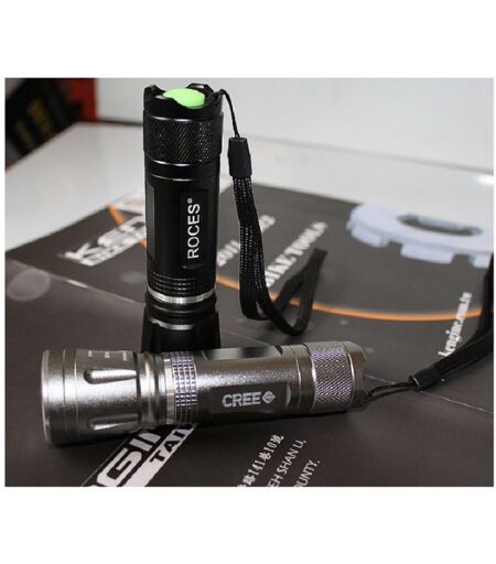 ROCES ¿ lumière de vélo, Mini lampe de poche lumineuse, Mini longueur focale réglable, trois motifs, lumières de sport en plein airDurée de vie de la lampe: 100,000 heuresTension: 3.6-4.81VBatterie: 3 piles 7 # ou 1 batterie 18650 (ne contient pas de batterie)Taille: 104mm(113mm) * 34mmPoids 110gNiveau de Protection: IP65 ...