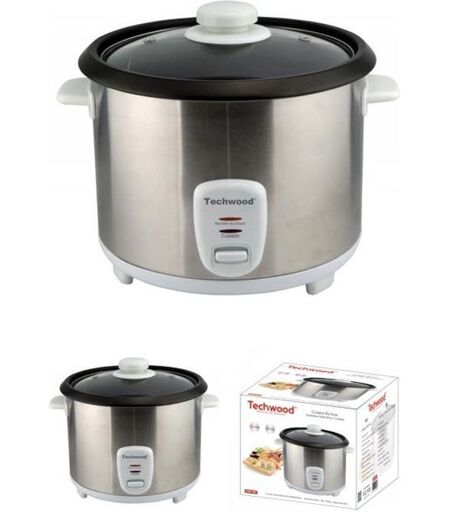 Techwood Cuiseur Riz 1,8L avec Cuve amovible anti-adhérente 2 positions de chauffe Témoin de Cuisson couleur INOX