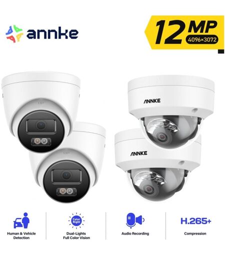 4 caméras de sécurité intérieures extérieures 12MP,détection de personnes véhicules, vision nocturne couleur, accès à distance - Annke