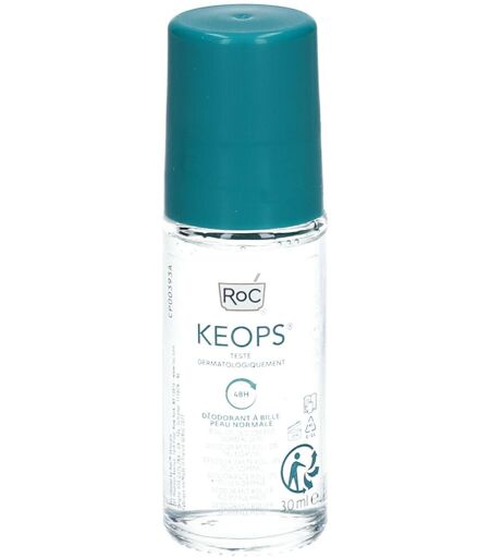 Le déodorant à bille Keops® de Roc apporte une efficacité 48h, sans parfum.BénéficesL'actif régulateur réduit la transpiration excessive tout en protégeant de la sensation d'inconfort et d'humidité.Les capteurs d'odeurs aident à éliminer les odeurs liées à la transpiration.Votre peau reste fraîche durant 48h. Sans parfum, sans alcool, n'irrite pas la peau.IndicationsTranspiration des aisselles. Idéal pour tous types de peaux, même après l'épilation.Conseils d'utilisationAppliquez sur une peau propre et sèche. Peut être utilisé à tout moment de la journée.Compositionwater, aluminum chlorohydrate, propylene glycol, ceteth-20, phenoxyethanol, allatoin, citronellyl methylcrotonate, hydroxyethylcellulose, methylparaben, propylparaben.ConditionnementRoll on de 30 ml ...