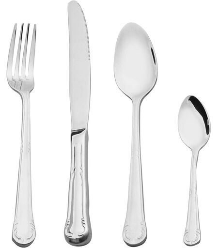 Set de couverts pour 4 personnes de la meilleure valeur pour l'argent. Composition : 4 cuillères de table (21cm) 4 fourchettes de table (21cm) 4 couteau de table (24,5cm) 4 cuillère à café (14,5 cm). Acier inoxydable 18/10 de qualité supérieure avec miroir poli. Les manches des couteaux sont creux, cette conception spéciale les rend légers et extrêmement confortables à utiliser. Son épaisseur de 2,5 mm vous offrira une prise en main optimale et confortable, ainsi qu'une grande résistance et une plus longue durée. Lavable au lave-vaisselle. ...