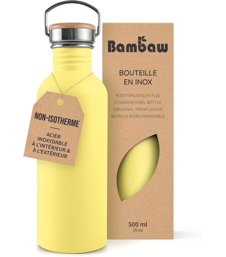 Écoresponsable Notre gourde inox 500ml est en acier inoxydable 18/8, sans BPA et totalement étanche. Hydratez-vous en tout confort et dites adieu au plastique !Résiste à lébullition Un indispensable pour vos sessions camping et aventures en extérieur, puisque la gourde 50cl Bambaw est légère comme une plume et résiste à lébullition.Large goulot Assez large pour y glisser des glaçons ou un sachet de thé, le goulot de la gourde enfants Bambaw permet de savourer vos breuvages favoris.Facile à nettoyer Comme son goulot est large, notre gourde sans BPA est très simple à nettoyer. Lintérieur est bien visible et tous ses recoins sont accessibles avec un goupillon.Couleurs signatures Choisissez parmi 10 teintes uniques et ajoutez une note de couleur à votre hydratation quotidienne.Fini le goût du plastique Leau na pas le même goût lorsquelle cesse dêtre contenue dans du plastique. Préparez votre palais à ce changement, votre santé vous en remerciera ! Expédié depuis la France et arrive sous 7 jours. ...
