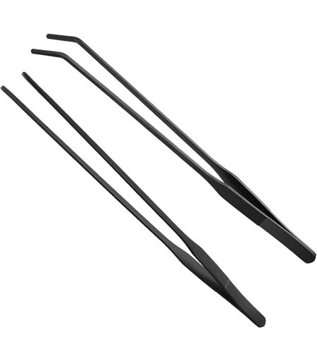 SEPT-Lot de 2 pinces à épiler droites et incurvées en acier inoxydable à long manche pour plantes aquatiques d'aquarium Noir 27,6 cm