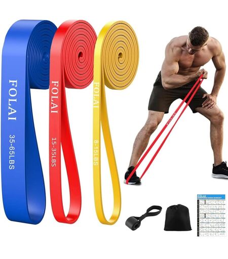 Variété de RésistancesLa Bandes de résistance est livrée avec trois niveaux de résistance¿Cet ensemble de bandes élastiques comprend 3 bandes de résistance différentes - bleu (25 - 65 LB), rouge (15 - 35 LB) et jaune (8 - 15 LB) pour s'adapter à tous les niveaux d'entraînement.Toute combinaison de bandes de résistance est un outil parfait pour entraîner tous les groupes musculaires. Les bandes de résistance sont durables et peuvent être utilisées pour l'entraînement complet du corpsExcellence Bande Elastique MusculationLa ceinture d'entraînement en résistance est faite de caoutchouc avec des ingrédients naturels, elle est durable et améliore le confort et la résistance à l'usure. Le matériau hautement élastique exceptionnel démontre la résistance à la déchirure et la durabilité de la bande de résistance. Après de nombreuses années, notre bande de résistance conserve également une bonne élasticitéBande de Résistance D'entraînement du corps entierLes bandes de fitness peuvent être utilisées pour divers exercices de musculation, tels que les tractions de soutien vers le haut, l'augmentation de la résistance aux Push - ups, l'entraînement de vitesse, la poussée couchée, les squats, la poussée d'épaule, etc. Les bandes de résistance sont également adaptées aux exercices de flexibilité tels que les étirements, la physiothérapie, le yoga, le Pilates, etcPlusieurs Façons D'utiliserNos ensembles de Bande Elastique Musculation sont équipés d'ancrages de porte. Cet accessoire peut être utilisé avec une ceinture d'entraînement pour diversifier vos séances d'entraînement et créer votre propre salle de gym personnelle. Vous pouvez également utiliser une combinaison de ces bandes de résistance si vous souhaitez augmenter l'intensité de votre entraînementFacile à transporterLa bande de résistance élastique Fitness est également livrée avec un sac à main dans lequel vous placez simplement la bande élastique fitness et les accessoires, ce qui est très portable. Entraînez - vous n'importe où, n'importe quand.La combinaison de plusieurs bandes de résistance s'adaptera à de nombreux programmes d'entraînement. C'est le meilleur accessoire de gym pour la maison, la salle de gym ou le parcAttentionNe convient pas aux enfants de moins de 3 ans. À utiliser sous la surveillance d'un adulteAttentionÀ utiliser sous la surveillance dun adulte Expédié depuis la France et arrive sous 7 jours. ...