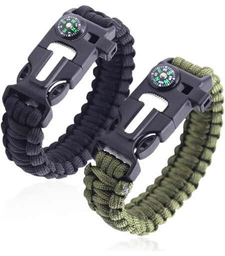 Applications Idéal pour le camping, la randonnée, l'alpinisme, la pêche et tous ceux qui aiment passer du temps à l'extérieur. Un choix polyvalent pour les passionnés de plein air.Indispensable pour l'extérieur notre bracelet de survie en plein air 5 en 1 est multifonctionnel il vous permet de poser des pièges, de réparer des objets, de cuire du riz au feu, d'utiliser la boussole pour trouver votre chemin et de vous préparer aux situations d'urgence. Avec son design compact et ses fonctions essentielles, ce bracelet tactique est un must-have.Élégant et résistant à l'usure ce bracelet multifonctionnel en paracorde convient aussi bien aux hommes qu'aux femmes. Son design fin le rend facile à porter et à ranger. Portez-le au poignet ou attachez-le à votre sac à dos pour l'avoir rapidement à portée de main lors de vos excursions aventureuses.Conception étanche le lanceur de feu dans le bracelet Paracord est étanche, ce qui vous permet d'allumer un feu même en cas d'humidité et de l'utiliser sans problème dans des environnements froids.Spécification du produit contient 2 bracelets de sauvetage 5 en 1 avec une boussole de haute qualité, une boucle, un lanceur de feu, un couteau qui sauve la vie et un sifflet qui sauve la vie, qui répondent à tous vos besoins en plein air ». Expédié depuis la France et arrive sous 7 jours. ...