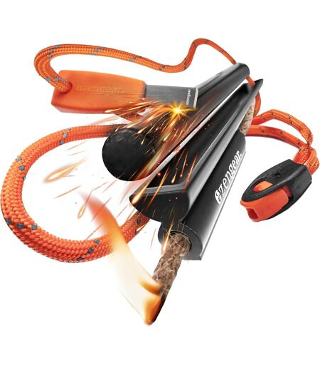ÉDITION ULTIMATE FIRESTEEL - L'allume-feu Zengear Flint Steel Pro est notre meilleure version d'un percuteur extérieur en silex et en acier sur le marché. Il s'agit d'un gadget de camping et de bushcraft tout compris qui se compose d'une tige de ferro XXL, d'une corde à mèche, d'un percuteur multi-outils, d'un paracorde 750 ainsi que d'un dispositif d'allumage de feu innovant, compact et léger qui permet d'allumer le feu dans toutes les conditions météorologiques comme une brise.TIGE DE FERRO DE TAILLE XXL - tige extra large, amovible et remplaçable de 120 mm x 13 mm (4,7 ""x 1/2"") de cérium, de lanthane, de fer et de magnésium pouvant supporter jusqu'à 20 000 coups produisant des douches d'étincelles chaudes fondues à 3 000 ° C (5 432 ° F).2 cordes à mèche en jute incluses ¿ chaque lot comprend deux bâtons en jute naturel de 15 cm chacun. Les mèches sont résistantes à l'eau et aux intempéries et ont une durée de combustion combinée approximative d'environ 1 heure.HSS STRIKER - le percuteur en silex est en acier inoxydable à grande vitesse750 PARACORD AVEC UN SIFFLET - Toutes les pièces sont sécurisées par un cordon de parachute de qualité militaire de 60 cm (24 po) de long de 750 lb qui comprend un revêtement réfléchissant la lumière et 11 brins intérieurs polyvalents qui peuvent être utilisés pour créer une ligne de pêche, de l'amadou ainsi que d'autres kits de survie . Un petit sifflet étanche est attaché au paracord.MODE D'EMPLOI - 1) adoucir l'extrémité de votre mèche d'amadou en la goant; 2) grattez le revêtement noir sur la tige de ferro ; 3) eammer la mèche en frappant le percuteur contre la tige ferro. Pour arrêter la flamme sur la mèche, tirez simplement la mèche dans la chambre à soufflet pour couper le flux d'oxygène vers la flamme. Expédié depuis la France et arrive sous 7 jours. ...