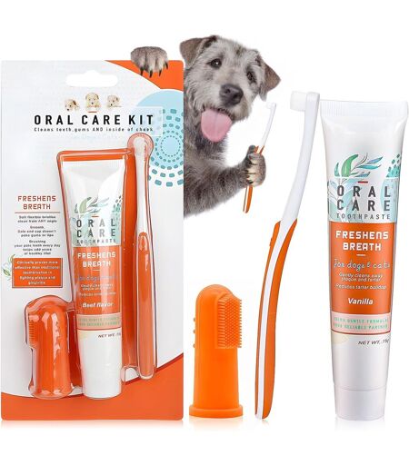 Fchhk-Brosse A Dent Chien Et Dentifrice, Dentifrice Pour Chien, Brosse A Dents Chien, Saveur De B?Uf, Préservez La Santé Bucco-Dentaire De Votre Animal, Convient Aux Chiens Ou Aux Chats, 3 Pièces