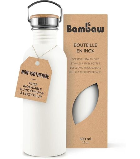 Écoresponsable Notre gourde inox 500ml est en acier inoxydable 18/8, sans BPA et totalement étanche. Hydratez-vous en tout confort et dites adieu au plastique !Résiste à lébullition Un indispensable pour vos sessions camping et aventures en extérieur, puisque la gourde 50cl Bambaw est légère comme une plume et résiste à lébullition.Large goulot Assez large pour y glisser des glaçons ou un sachet de thé, le goulot de la gourde en inox Bambaw permet de savourer vos breuvages favoris.Facile à nettoyer Comme son goulot est large, notre gourde inox sport est très simple à nettoyer. Lintérieur est bien visible et tous ses recoins sont accessibles avec un goupillon.Couleurs signatures Choisissez parmi 10 teintes uniques et ajoutez une note de couleur à votre hydratation quotidienne.Fini le goût du plastique Leau na pas le même goût lorsquelle cesse dêtre contenue dans du plastique. Préparez votre palais à ce changement, votre santé vous en remerciera ! Expédié depuis la France et arrive sous 7 jours. ...