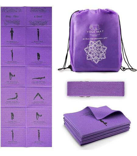 Slep-Tapis De Yoga Pliable Pour Les Femmes,Tapis D'exercice Antidérapant Pour La Salle De Sport À La Maison,Ensemble De Yoga De Voyage Avec Sangle D'étirement Pour Yoga Pilates Et Fitness,173 X 61 X