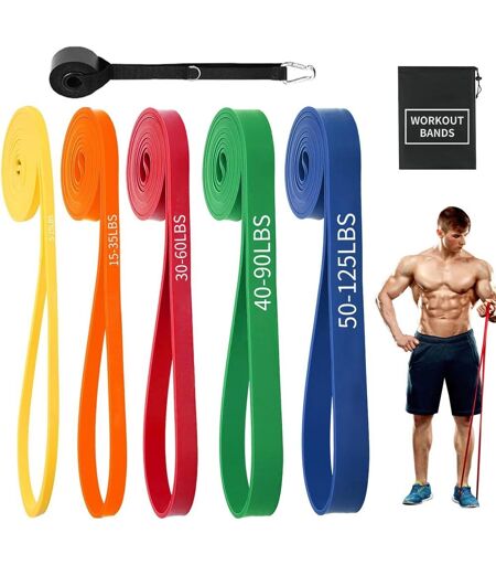 Sept-Lot De 5 Bandes De Résistance Avec Ancrage De Porte, Bande De Gymnastique Pour Hommes Et Femmes, Bande De Fitness Pour Yoga, Pilates, Musculation, Tractions, Physiothérapie