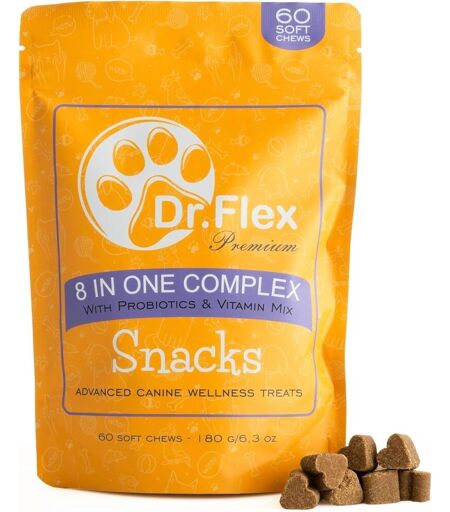 Friandises multivitaminées 8-en-1 à effet fonctionnel ¿ Ces délicieux soft-chews associent probiotiques, vitamines, huile de saumon, MSM, chondroïtine et d¿autres ingrédients actifs ¿ idéaux pour soutenir la digestion, les articulations, le système immunitaire et la vitalité, même en cas de troubles digestifs. Enrichis en glucosamine, collagène bovin et vitamine C ¿ un complément alimentaire complet pour chiens, parfait comme snack articulaire quotidien, friandise ou comme partie d¿une alimentation saine.Favorise la santé intestinale et les défenses immunitaires ¿ Avec des probiotiques et prébiotiques de qualité pour favoriser une flore intestinale saine, améliorer l¿absorption des nutriments et renforcer naturellement le système immunitaire ¿ particulièrement en cas de digestion sensible. Contient également de la vitamine E pour une protection antioxydante des cellules. Utile en cas de déséquilibre bactérien, ballonnements ou après l¿administration d¿enzymes pancréatiques, et peut être utilisé comme cure intestinale douce.Soutien quotidien des articulations et de la mobilité ¿ Contient du MSM, de la chondroïtine et des oméga-3 issus de l¿huile de saumon pour le soin articulaire. Idéal en cas d¿arthrose, de raideur ou en prévention chez les chiens actifs ou âgés. Complément précieux en cas de problèmes articulaires ou comme routine quotidienne de supplémentation. Avec en plus de l¿acide hyaluronique pour soutenir le cartilage. Parfait comme alternative à la poudre articulaire ou en association avec des capsules, comprimés ou tablettes articulaires.Grande appétence et administration facile ¿ Ces soft-chews moelleux sont parfaits comme récompense, bâtonnets à mâcher ou snack entre les repas. Même les chiens difficiles adorent leur texture et leur goût naturel. Fonctionnent aussi très bien comme snack digestif, friandise ou treat, même chez les chiens coprophages, sensibles ou pour un pelage brillant.Naturels, sans additifs et adaptés à tous les âges ¿ Sans sucre, colorants ni conservateurs artificiels. Convient aux jeunes chiens, chiens adultes et seniors ¿ utilisation quotidienne pour une meilleure santé, bien-être et soutien naturel du système digestif. Utile également en cas de troubles digestifs, après un traitement antibiotique ou si des enzymes digestives sont nécessaires. Sans lactose et très bien toléré. Expédié depuis la France et arrive sous 7 jours. ...