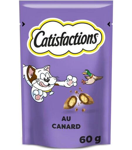 Apt-Catisfactions Friandises Pour Chat Et Chaton Au Délicieux Canard - Lot De 6 Sachets De 60g - Croquantes À L'extérieur Tendres À L'intérieur - Idéal Pour Partager Un Moment De Complicité