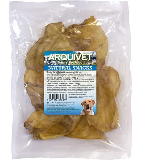 Oreilles de veau déshydratées et fumées qui facilitent l'hygiène dentaire de votre animal de compagnie. Produit 100% naturel.Grâce à leur forte proportion de cartilage, les oreilles fournissent un nettoyage dentaire complet, aidant à éliminer le tartare accumulé, à empêcher la formation de plaque, à renforcer les muscles masticateurs et à prendre soin des gencives.Ils sont très digestibles et idéaux pour eux de divertir et de profiter entre les repas.Nourriture complémentaire pour les chiens, utiliser comme cadeau ou récompense à tout moment, dans une alimentation équilibrée.Quantité sac 10 unités Expédié depuis la France et arrive sous 7 jours. ...