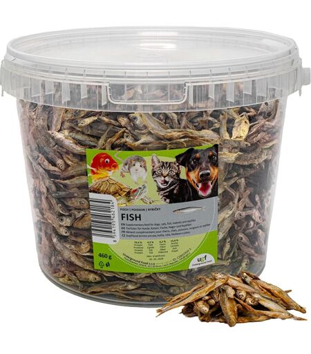 Le poisson séché est une friandise nutritive pour les chiens, car il est riche en protéines et en acides gras oméga-3 et 6, qui favorisent un pelage et une peau sains et peuvent améliorer la santé bucco-dentaire globale des chiens. Cette friandise pour chien est savoureuse, facile à digérer et faible en gras, ce qui en fait un excellent choix pour les chiens à digestion sensible.Délicieux pour chiens - Convient à toutes les races et tailles de chiens - Peut être utilisé comme sédatif lors des examens vétérinaires, lors de l'entraînement, comme récompense pour un bon comportement ou comme collation à mâcher.100 % naturel ¿ Notre poisson sec est une friandise saine pour les chiens, car il est séché doucement pour préserver tous ses nutriments 100 % naturels ¿ hypoallergénique et sans OGM, sans colorants artificiels ni conservateurs.Emballage pratique notre poisson séché est livré dans un seau pratique et recyclable, de sorte qu'il est facile à stocker, ne sent pas, le poisson reste en une seule pièce et est donc de la plus haute qualité.Service client de qualité supérieure la société UGF a de nombreux clients satisfaits, des fabricants d'aliments pour animaux aux détaillants et grossistes d'aliments pour animaux. Nous coopérons avec des zoos de différents pays qui nourrissent leurs animaux avec nos produits. Avec nous, vous pouvez être sûr d'obtenir un produit de première classe et un excellent service client. Expédié depuis la France et arrive sous 7 jours. ...