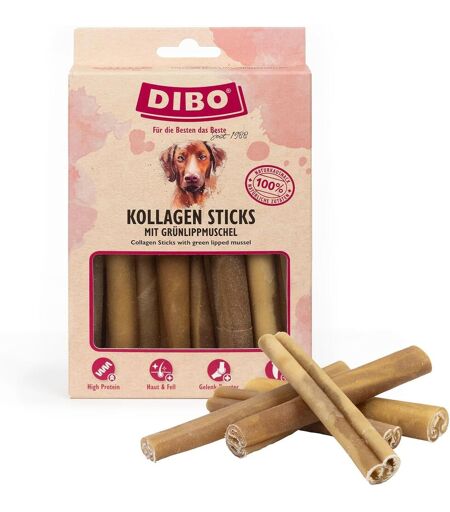 DIBO Bâtonnets de collagène pour chiens - L'arme miracle savoureuse pour les articulations, le pelage et les dents. Riche en protéinesLa taille parfaite pour les mâcheurs moyens et forts avec environ 14 cm de long, un plaisir idéalLe snack à mâcher avec de la moule aux orles vertes et du collagène est obtenu à partir de peau de b?ufHaute protéine cette collation contient 92,1 % de protéines et favorise la croissance des jeunes chiens, renforce les muscles et fournit une énergie précieuseDIBO Les bâtonnets de collagène sont inodores pour le plaisir des maîtres et des femmes et sont entièrement digestiblesLe collagène contenu provenant du b?uf renforce la santé de la peau et du pelage, ce que l'on peut voir en un rien de temps avec une alimentation régulièreLe collagène et la moule aux orles verts sont la combinaison idéale pour soutenir la santé articulaire et donc ulaire auprès des propriétaires de chiens dont les chiens souffrent de problèmes articulaires Expédié depuis la France et arrive sous 7 jours. ...