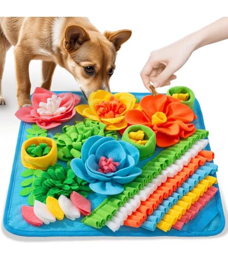 ENTRAÎNEMENT INNOVANT À L'ODEUR Ce tapis de reniflage au design innovant convient aux chiens de tous âges et est particulièrement adapté aux chiens anxieux, stressés ou âgés. Les friandises cachées dans le tapis permettent à votre chien de s'amuser tout en cherchant, en évacuant le stress et en évitant les comportements destructeurs causés par l'anxiété.LA COMBINAISON PARFAITE DU JEU ET DE L'EXERCICE 10 minutes de reniflage équivalent à une heure de promenade en plein air ! Même pendant les journées chargées, ce tapis renifleur permet à votre chien de faire beaucoup d'exercice et de s'entraîner pour l'aider à brûler son excès d'énergie et à rester en bonne santé.VARIÉTÉ DE DÉFIS Ce tapis renifleur pour chien offre une variété de types et de difficultés de recherche pour motiver votre chien à explorer différents défis. En saupoudrant des friandises sur le tapis, vous pouvez améliorer la capacité de reniflage de votre chien et le divertir pendant des heures d'entraînement.FACILE À NETTOYER ET DURABLE Le tapis de reniflage est fabriqué en tissu de feutre robuste avec un fond doublement cousu pour garantir la durabilité et ne pas se déchirer facilement, en toute sécurité et sans souci. Il est lavable en machine et peut être séché au sèche-linge. Un nettoyage hebdomadaire est recommandé pour garder votre animal en bonne santé.LE MEILLEUR CADEAU POUR LES CHIENS Ce coussin renifleur pour chien est un cadeau idéal pour les animaux de compagnie, qu'il s'agisse d'un anniversaire, d'une fête ou d'un jour spécial, il apportera à votre chien un plaisir et une excitation sans fin. Ce n'est pas seulement un jouet, mais aussi une source de santé et de bonheur pour votre animal, un choix indispensable pour tous les propriétaires d'animaux. Expédié depuis la France et arrive sous 7 jours. ...