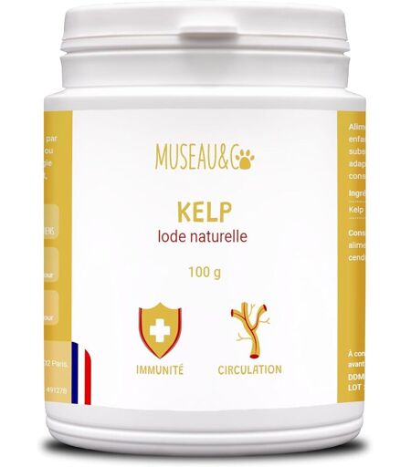 BOOST NUTRITIONNEL COMPLET Le kelp, véritable trésor marin, offre un cocktail exceptionnel de minéraux, vitamines et oligo-éléments essentiels pour la santé optimale de votre animal. Chaque dose est une vague de bien-être pour votre compagnon !PELAGE ÉCLATANT ET PEAU SAINE Les nutriments du kelp nourrissent la peau et le pelage de l'intérieur, offrant à votre animal une fourrure brillante et une peau en pleine santé. Dites adieu aux poils ternes et bonjour aux caresses soyeuses !SOUTIEN THYROÏDIEN NATUREL L'iode naturellement présent dans le kelp aide à réguler la fonction thyroïdienne, essentielle au métabolisme de votre animal. Offrez-lui une énergie stable et durable tout au long de la journée !DÉFENSES IMMUNITAIRES RENFORCÉES Les antioxydants du kelp boostent le système immunitaire de votre compagnon, le protégeant contre les agressions extérieures. Un bouclier naturel pour une vie pleine de vitalité !SOLUTION ÉCOLOGIQUE ET DURABLE En choisissant le kelp, vous optez pour un complément 100% naturel et respectueux de l'environnement. Prenez soin de votre animal tout en préservant notre planète ! Expédié depuis la France et arrive sous 7 jours. ...