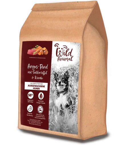 WILD ANIMAL À vos meilleurs amis, nous leur servons bien plus que de la « nourriture », nous leur servons la nature à l¿état pur. Comment ? Tout simplement ! Nous nous emparons du meilleur de ce que les forêts et les prairies ont à offrir et l¿allions avec des ingrédients naturels, sélectionnés avec soin, en vue de concocter, dans notre fabrique naturelle, une proie digne des plus grands aventuriers. Ce qui est banni ? Les céréales et additifs artificiels bien sûr ! POURQUOI DU B?UF ANGUS ? Par rapport aux races bovines « normales », le b?uf Angus est réputé pour être de meilleure qualité. Par ailleurs, cette proie est une source de protéines extrêmement facile à digérer. DIGESTION FACILE Les prébiotiques MOS et FOS contribuent à la bonne santé de la flore intestinale et favorisent la digestion. L¿HUILE DE POISSON COMME SOURCE D¿OMÉGA 3 Contribue à la santé de la peau et du poil. SANS COLORANTS NI CONSERVATEURS ARTIFICIELS Avec de l¿extrait de romarin comme conservateur naturel. WILD ANIMAL À vos meilleurs amis, nous leur servons bien plus que de la « nourriture », nous leur servons la nature à l¿état pur Comment ? Tout simplement ! Nous nous emparons du meilleur de ce que les forêts et les prairies ont à offrir et l¿allions avec des ingrédients naturels, sélectionnés avec soin, en vue de concocter, dans notre fabrique naturelle, une proie digne des plus grands aventuriers Ce qui est banni ? Les céréales et additifs artificiels bien sûr ! POURQUOI DU B?UF ANGUS ? Par rapport aux races bovines « normales », le b?uf Angus est réputé pour être de meilleure qualité Par ailleurs, cette proie est une source de protéines extrêmement facile à digérer DIGESTION FACILE Les prébiotiques MOS et FOS contribuent à la bonne santé de la flore intestinale et favorisent la digestion L¿HUILE DE POISSON COMME SOURCE D¿OMÉGA 3 Contribue à la santé de la peau et du poil SANS COLORANTS NI CONSERVATEURS ARTIFICIELS Avec de l¿extrait de romarin comme conservateur naturel Expédié depuis la France et arrive sous 7 jours. ...